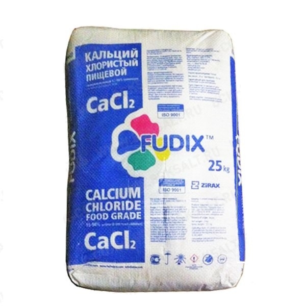 Кальций хлористый пищевой (E509) упаковывают в полипропиленовые лиманированные мешки массой 30 кг. Кальцинированный и гидратированный хлористый кальций упаковывают в мягкие специализированные контейнеры типа МКР-1,0С, в стальные барабаны типов I или III, в полиэтиленовые мешки, по соглашению с потребителем – в пятислойные битумированные мешки.